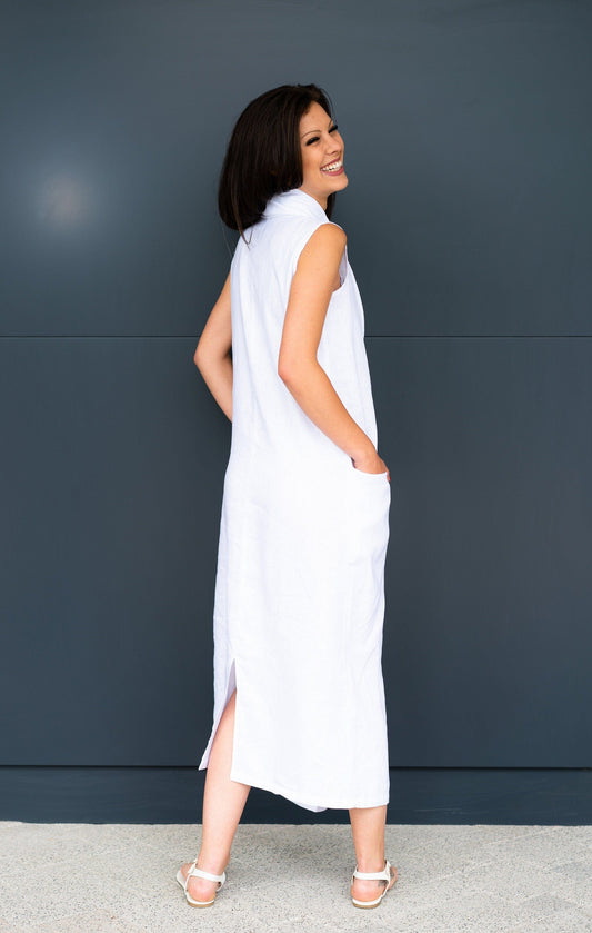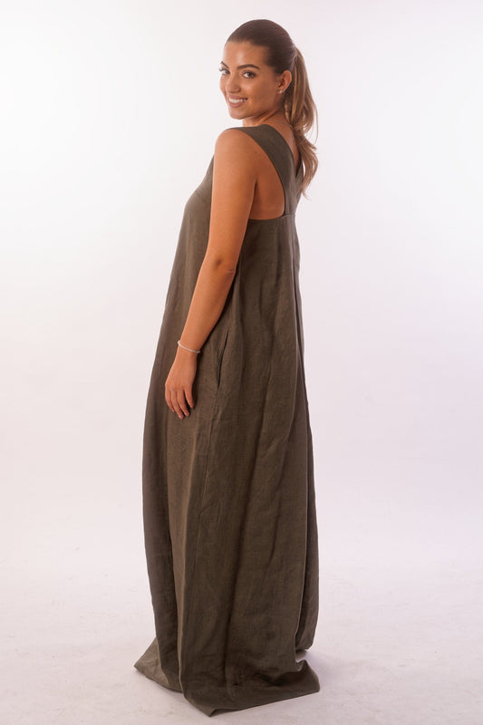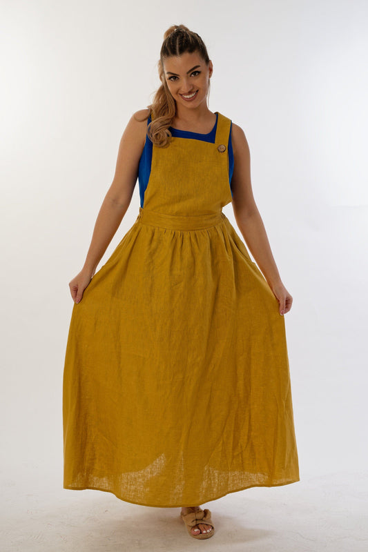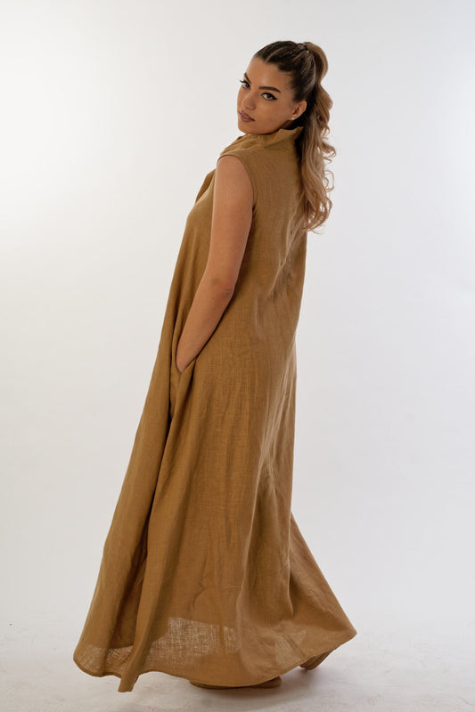 Natural Linen Maxi Skirt — Wide Structured Waistband