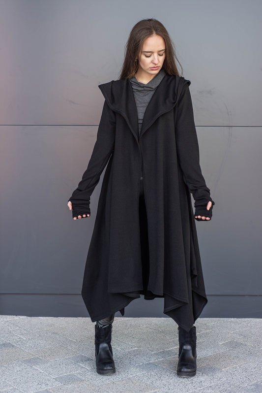 Black Jersey Asymmetric Tunic — Thumb Holes